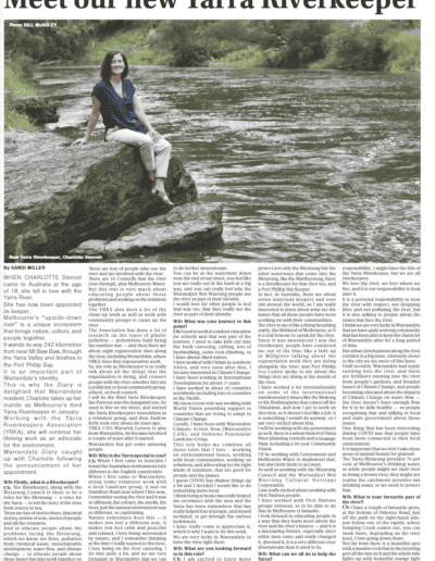 Warrandyte DiaryMeet our new Yarra Riverkeeper by Sandi Miller, photograph by Bill McAuley