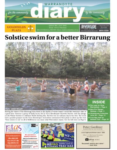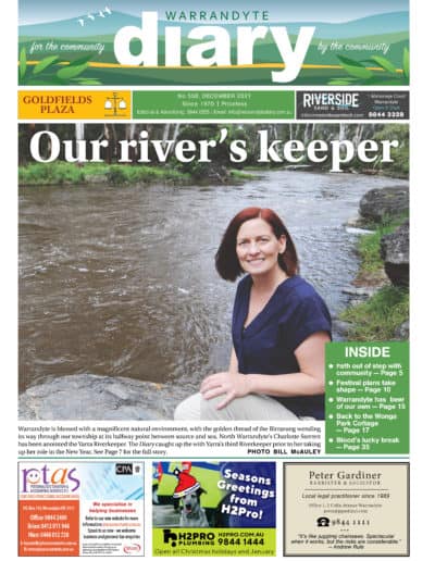 I will start by mentioning the superb layout. A full page, nice big heading at the top that tells us what the story is about, the photo shows the Yarra River flowing from the top left-hand corner through the middle of the photo down to the right foreground, on the left hand side we have the rocks jutting out and there, perched on the rock, off-centre to the left, is our riverkeeper Charlotte Sterrett. This photo is a piece of art, and it tells us the story beautifully with our riverkeeper sitting there on the rock looking directly at the camera because that’s her job, to communicate the purpose and the story of the river to the community. Congratulations Bill McAuley on telling us the story with one single picture. Sandi Miller has presented this as a Q&A which works superbly in this case. I didn’t know what a riverkeeper was before this. Sandi pitches the questions beautifully, and that allows Charlotte to answer them with her expertise, with her passion and with her love of the river and her job in such a way that that’s communicated to us effectively. There is a short introduction to the Q&A which is educative, informative, ticking all the boxes as to what this is about and why it is important and interesting and in a very engaging way. I felt blessed that someone like Charlotte is our riverkeeper and it really gives me a great sense of hope that with people like that and these roles being created, that this society we’re in today and future societies are going to get a much better understanding of just what a living breathing thing the Yarra River is, and with that understanding and love for it we can take proper care of it, we can nurture it and foster it but also we can become conscious of just how important it is to our own being. The Warrandyte Diary and Sandi and Bill have absolutely nailed this story and given us a comprehensive understanding and feeling of what this is all about. Congratulations to the Warrandyte Diary, congratulations to Sandi Miller, congratulations to Bill Macaulay the photographer, and congratulations to Charlotte for what she is doing and the council for appointing her to this position. We look forward to more wonderful stories in the Warrandyte Diary and beyond about the Yarra River and the river’s importance to our own lives.