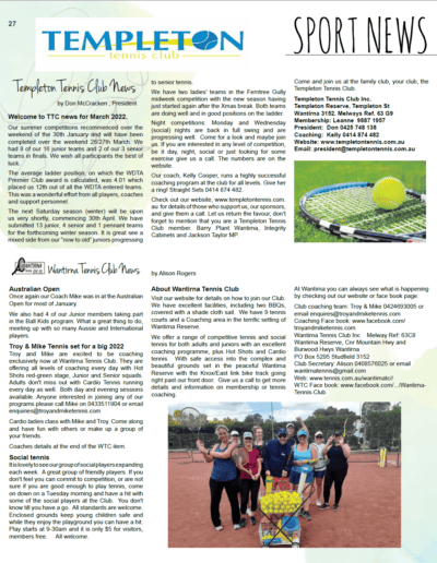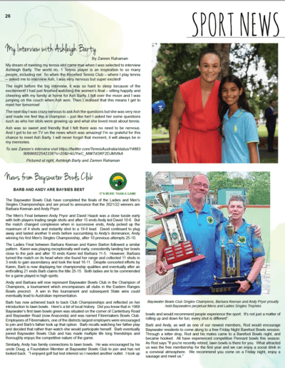 I was impressed with the Studfield Wantirna Community News Sports Section which offered wide ranging local sports coverage and in particular a story from the perspective of young tennis player Zareen Rahaman who had the opportunity to interview Aussie tennis star Ash Barty following her Australian Open victory. It was great to see some pieces written by young people. They are the future of our communities and our news publications.